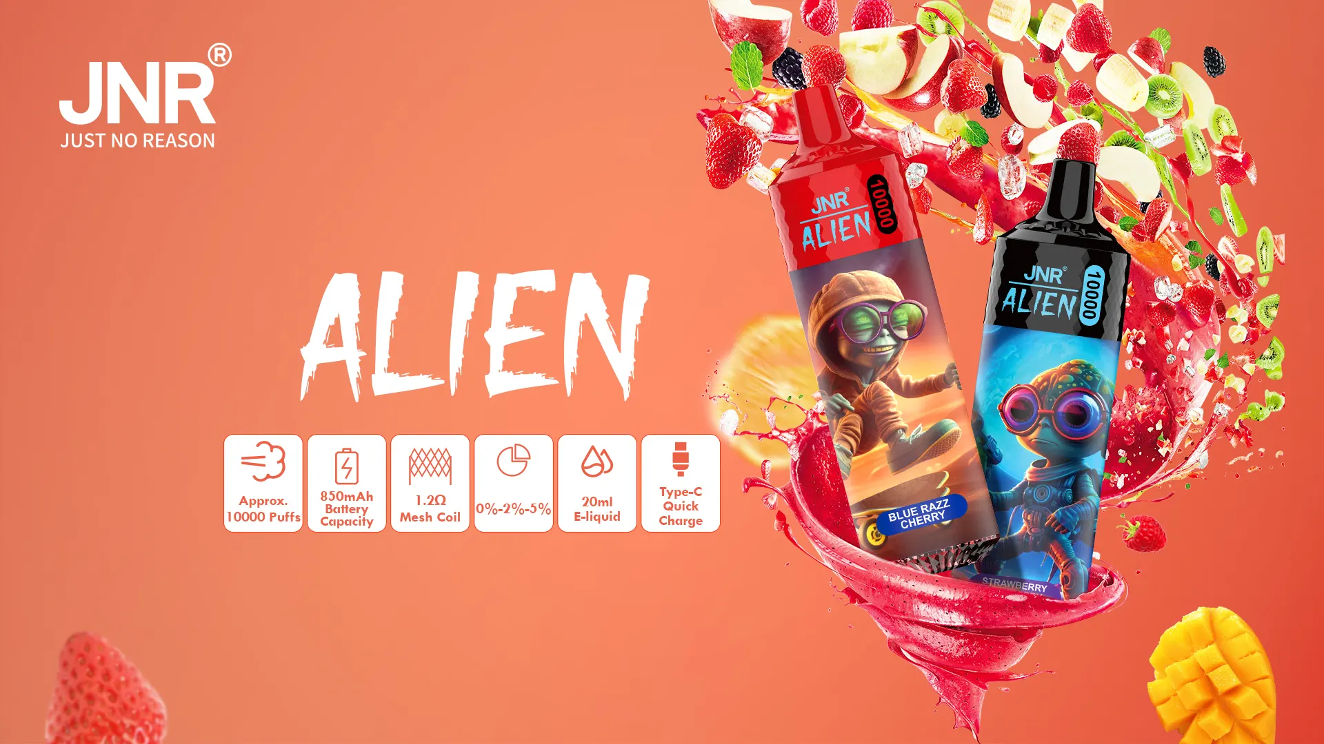 JNR Alien 10K sets a new benchmark for everyday vaping, delivering an impressive balance of performance, flavor, and convenience with up to 10,000 puffs of smooth satisfaction.